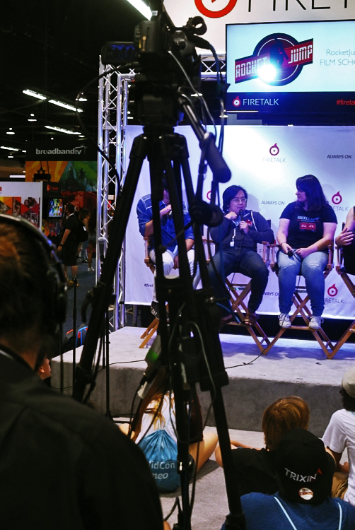 A live-streamed interview on the fan floor.